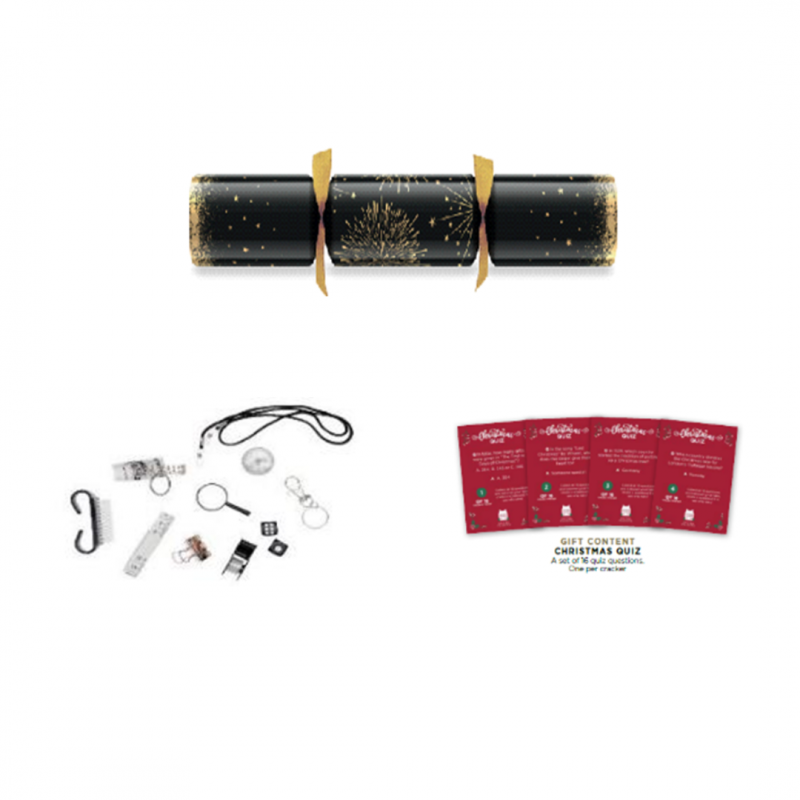 Make a bold statement at your celebrations with our 12" Sparkly Black Duni Foil Board Crackers. Styled with a dazzling black foil finish, each cracker includes UG2 and a festive Christmas quiz to keep guests entertained. Perfect for Christmas dinners, parties, and holiday gatherings, these crackers combine glamour with fun.